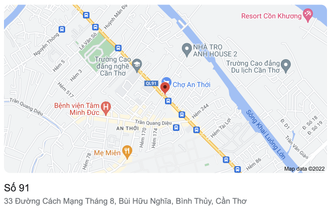 - Địa chỉ: Số 91/33A, CMT8, An Thới, Bình Thủy, Cần Thơ