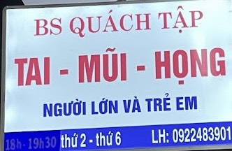 Bs. Quách Tập hiện là trưởng khoa khám bệnh tại Bệnh viện tai mũi họng. Phòng khám Bsác sĩ Tập chuyên khám và điều trị các bệnh lý tai mũi họng người lớn và trẻ em: Viêm mũi họng, viêm tai giữa chảy mủ kéo dài, viêm họng trào ngược, vướng họng...