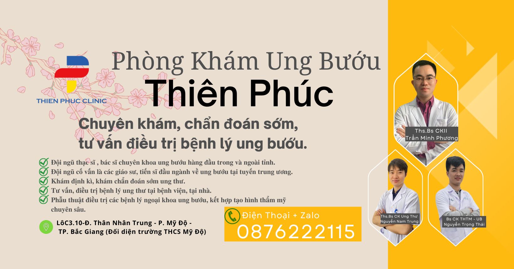 Bắc Giang - Phòng khám ngoai ung bướu Thiên Phúc - Bác sĩ CKII Trần Minh Phương, Bác sĩ Nguyễn Trọng Thái, Bác sĩ Nguyễn Nam Trung