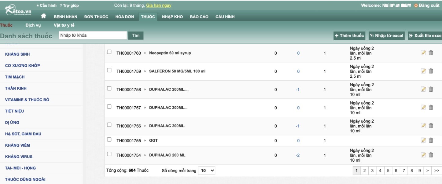 B1: Sau khi đăng nhập thành công, trên giao diện chính chọn Tab THUỐC